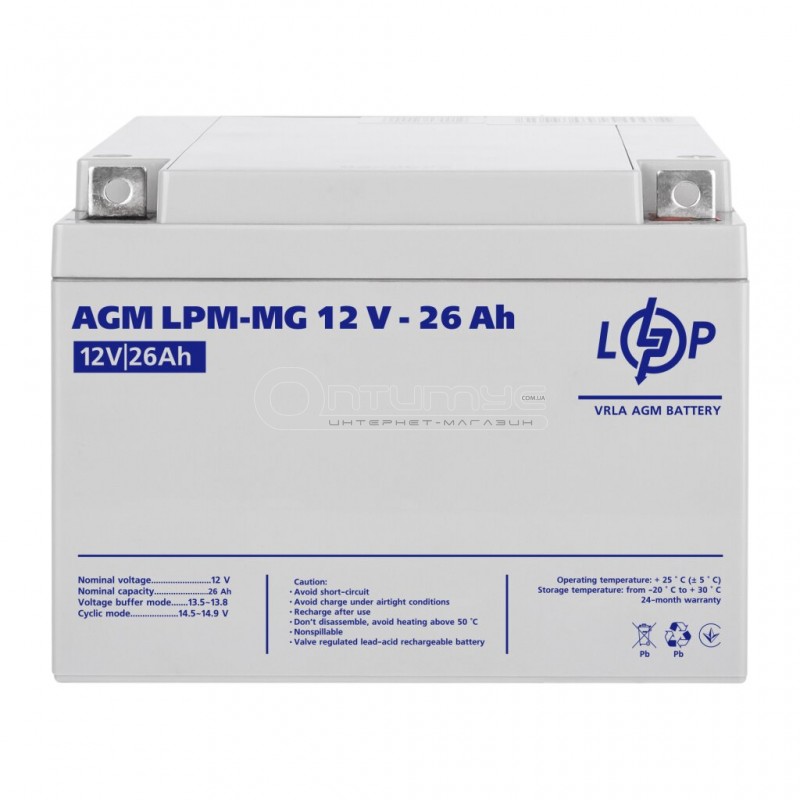 Аккумулятор AGM LogicPower LPM-MG, 12 В 26 Ач