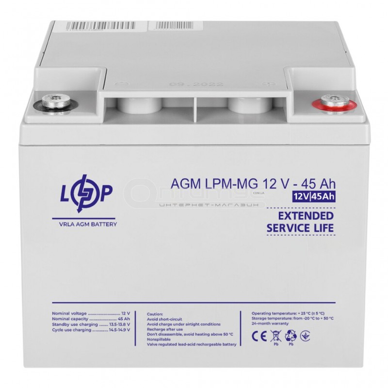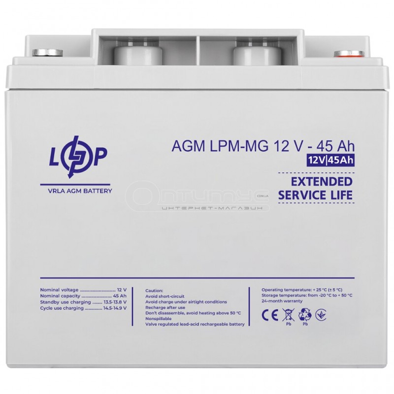 Аккумулятор AGM LogicPower LPM-MG, 12 В 45 Ач