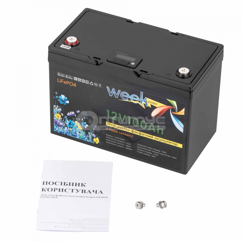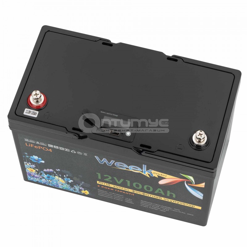 Литий-железо-фосфатный (литий-ферумный) аккумулятор Weekender LiFePO4 12,8 В 100 Ач с дисплеем, 3000 циклов