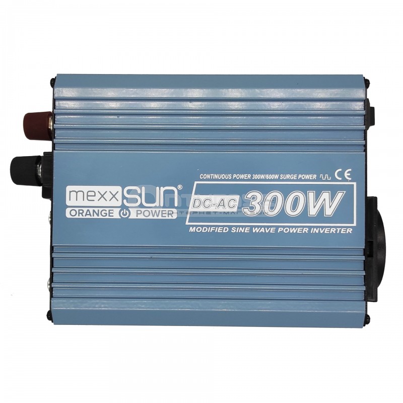 Инвертор напряжения Mexxsun YX-300-M, 300 Вт (600 Вт), 12/220 В, модифицированная синусоида - используется для преобразования постоянного тока 12 В в переменный ток 220 В/50 Гц. Данный инвертор можно использовать для работы различных бытовых устройств: ноутбуков, видеокамер, телефонов, аудио, видеотехники и других электроприборов.