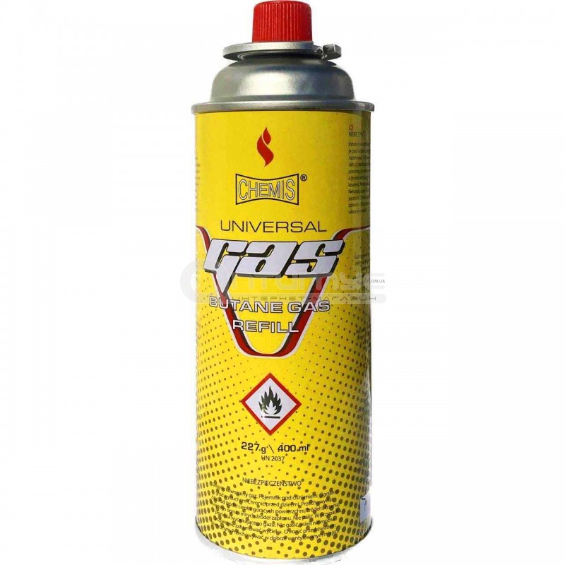 Газовый баллончик Chemis UNIVERSALE Gas 227 г/400 мл для горелок, туристических газовых плит и другого оборудования с цанговым соединением. Подходит для всех распространенных газовых плит и горелок.