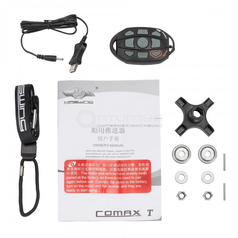 лодочный электромотор, беспроводной пульт, винт 3-х лопасной, коробка картонная упаковочная, набор документов |