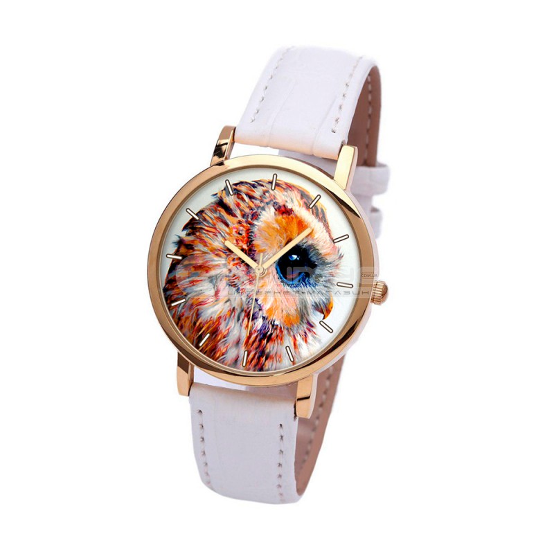 Наручные часы TIA Глаз совы, белый ремешок, золотистый корпус
