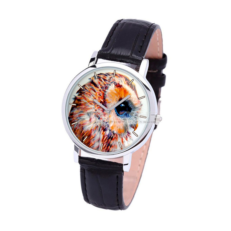 Наручные часы TIA Глаз совы, черный ремешок, серебристый корпус