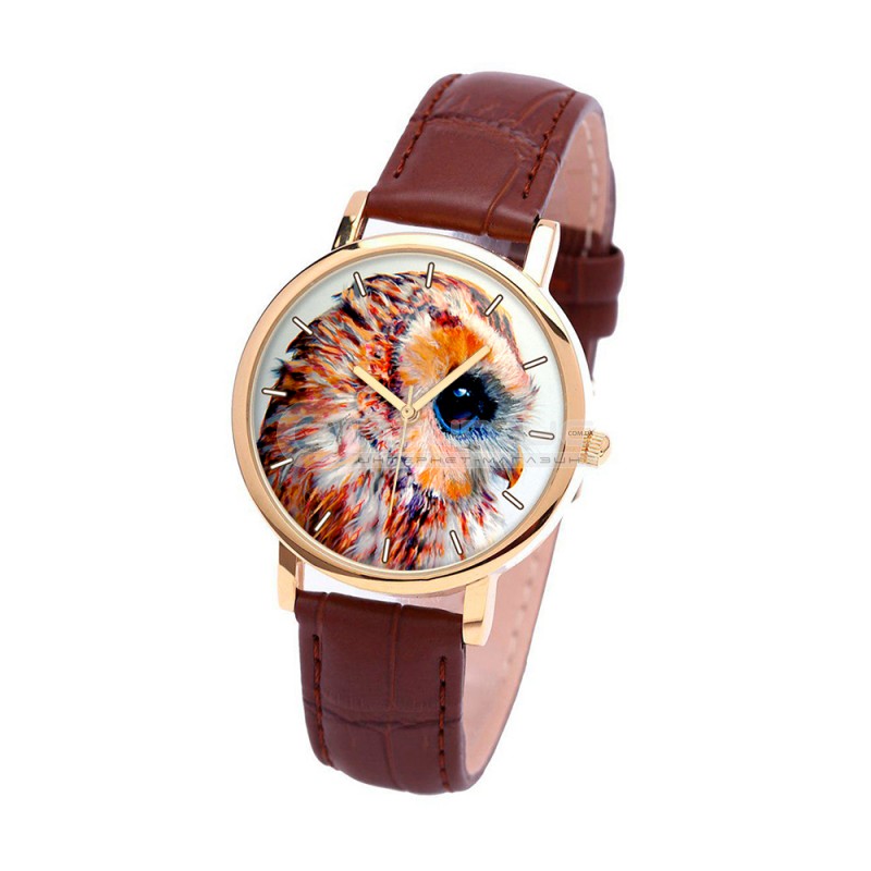 Наручные часы TIA Глаз совы, коричневый ремешок, золотистый корпус
