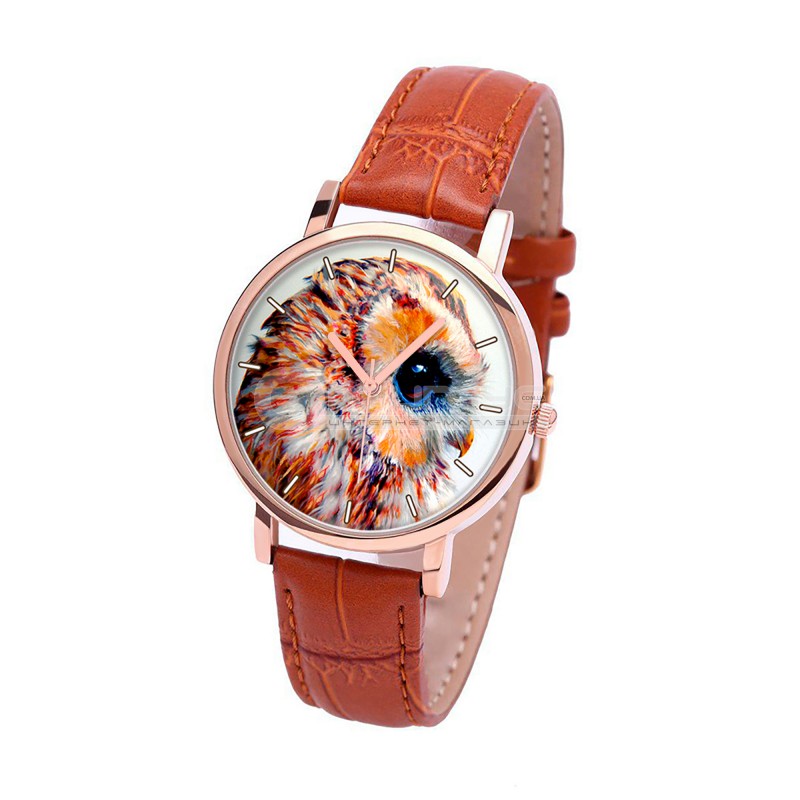 • Наручные часы TIA Глаз совы, рыжий ремешок, корпус розовое золото