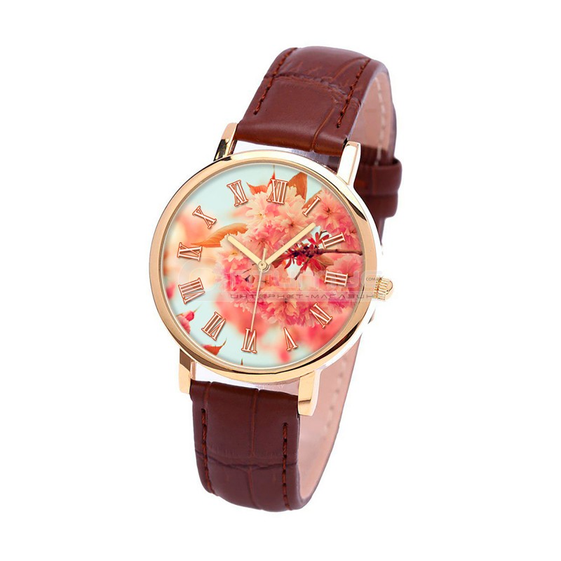 Наручные часы TIA Магические цветные, коричневый ремешок, золотистый корпус