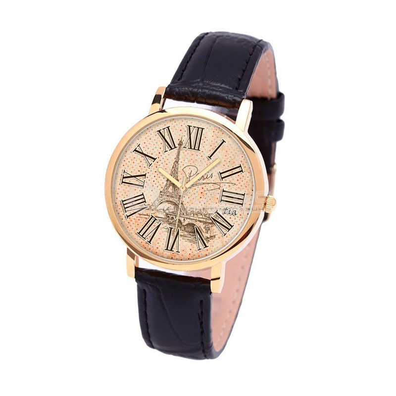 Наручные часы TIA Париж Эйфелева башня, черный ремешок, золотистый корпус