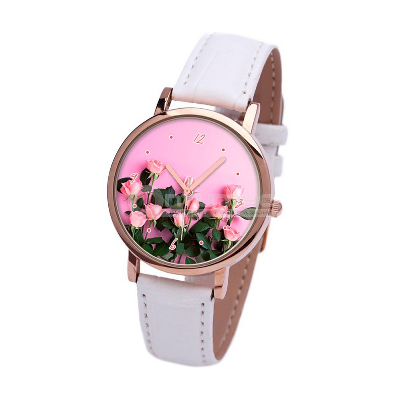 Наручные часы TIA Розовые Розы, белый ремешок, корпус розовое золото