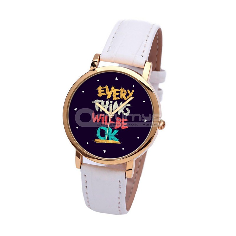 Наручные часы TIA Все будет хорошо, белый ремешок, золотистый корпус