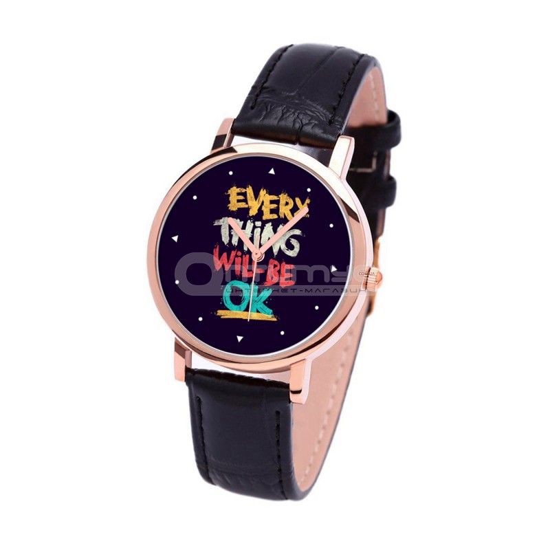 Наручные часы TIA Все будет хорошо, черный ремешок, корпус розовое золото