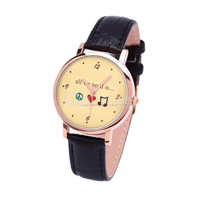Наручные часы TIA Все,что нам нужно,это..., черный ремешок, корпус розовое золото