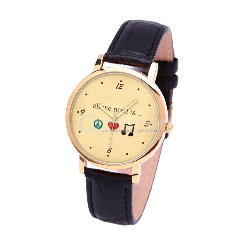 Наручные часы TIA Все,что нам нужно,это..., черный ремешок, золотистый корпус