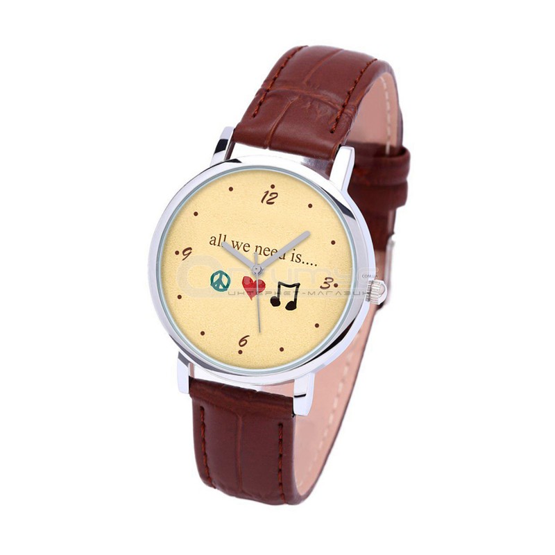 Наручные часы TIA Все,что нам нужно,это..., коричневый ремешок, серебристый корпус