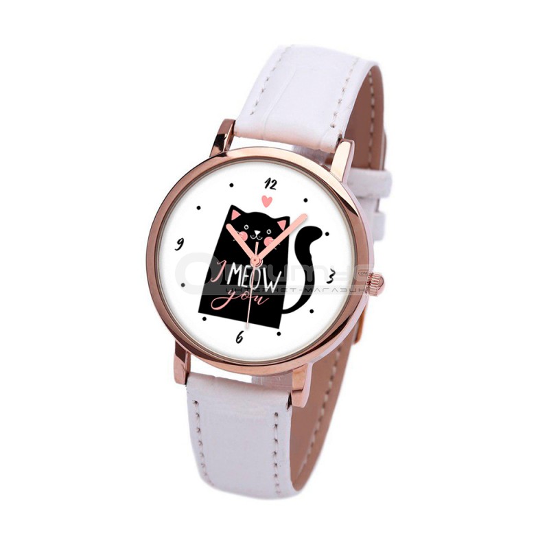 Наручные часы TIA Я Мяу Ты , белый ремешок, корпус розовое золото