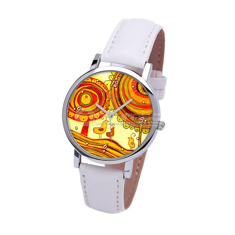 Наручные часы TIA Забавные птицы, белый ремешок, серебристый корпус