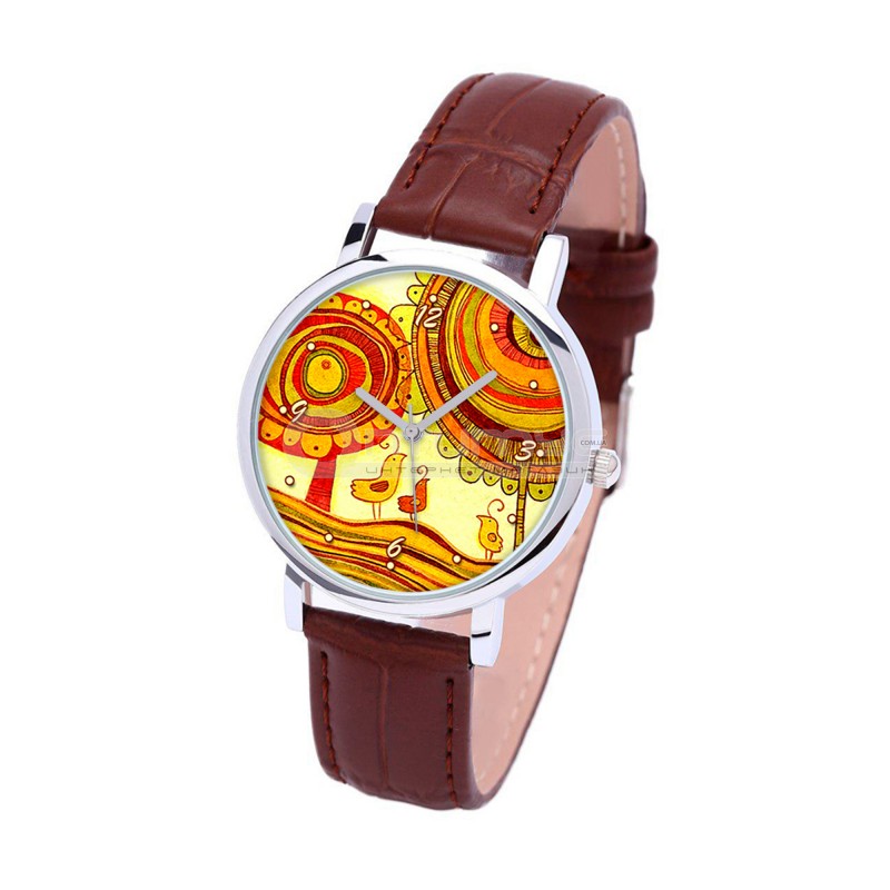 Наручные часы TIA Забавные птицы, коричневый ремешок, серебристый корпус