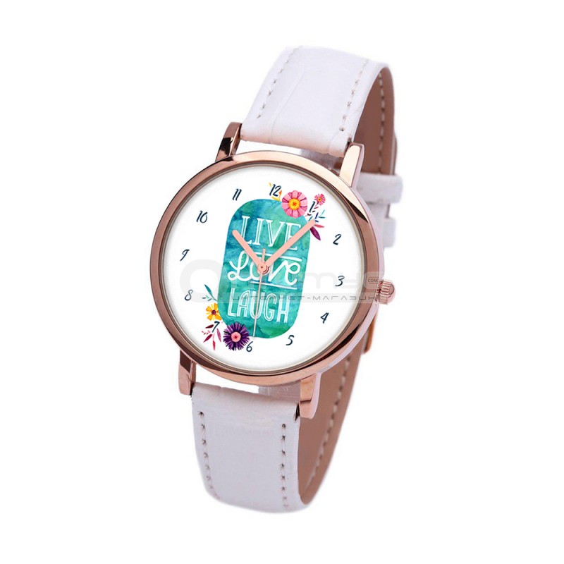 Наручные часы TIA Жить Любить Смеяться, белый ремешок, корпус розовое золото
