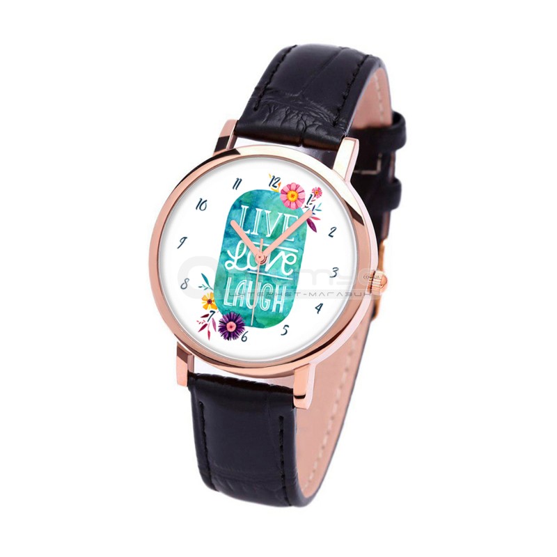 Наручные часы TIA Жить Любить Смеяться, черный ремешок, корпус розовое золото