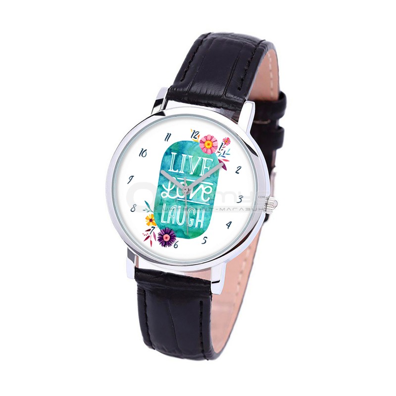 Наручные часы TIA Жить Любить Смеяться, черный ремешок, серебристый корпус