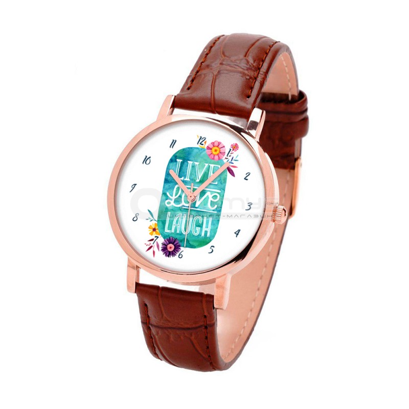 Наручные часы TIA Жить Любить Смеяться, коричневый ремешок, корпус розовое золото