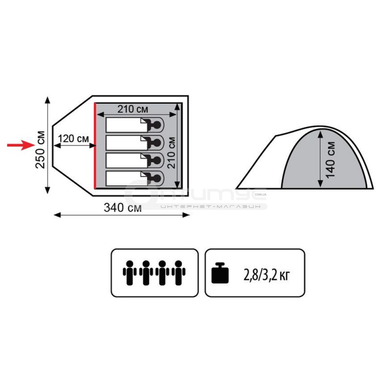 - Материал внутренней палатки: 100% дышащий polyester 68D/68D 190T