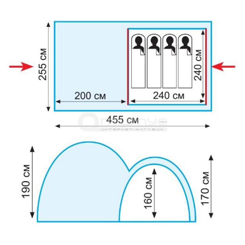 - Внешний тент палатки устойчив к ультрафиолетовому излучению
