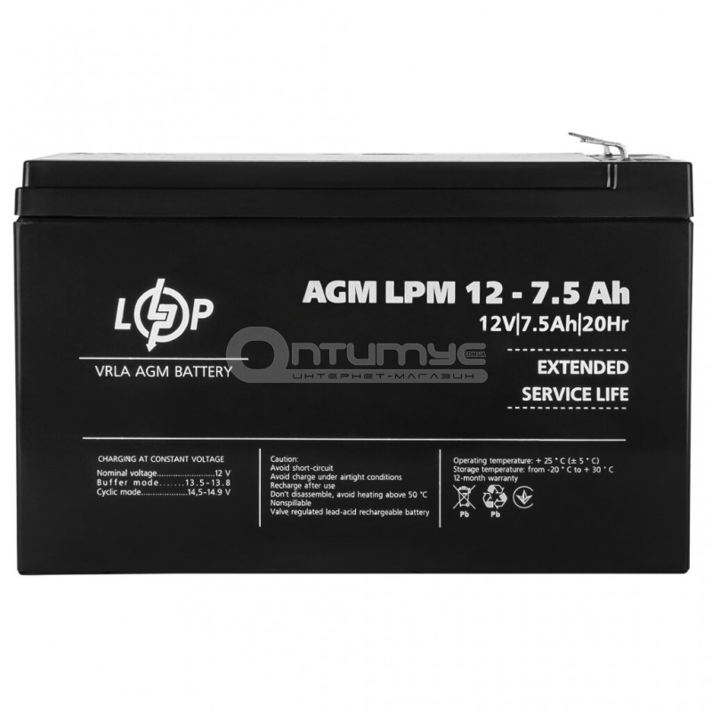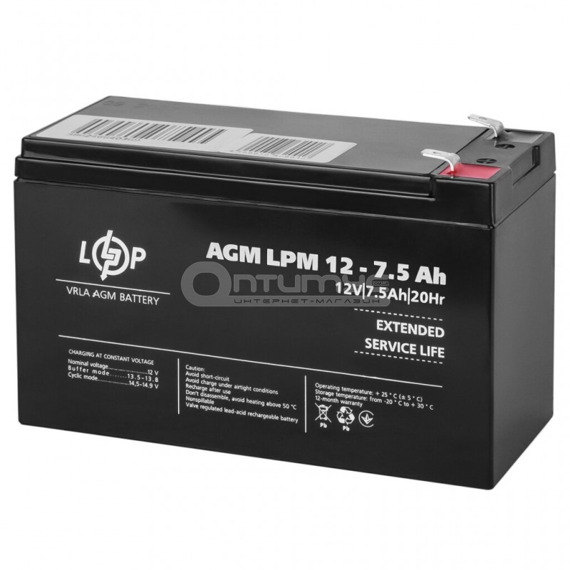 Акумулятор AGM LogicPower LPM, 12 В 7.5 Аг