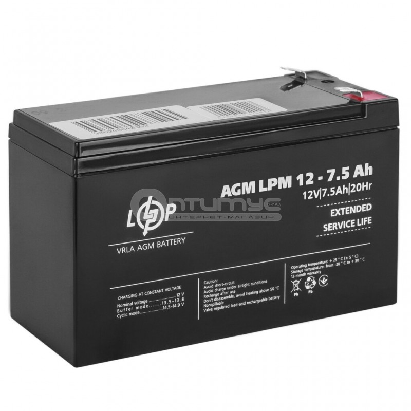 Аккумулятор AGM LogicPower LPM, 12 В 7.5 Ач — компактний і потужний елемент для вашого електронного обладнання. Завдяки передовій технології AGM, цей акумулятор забезпечить стабільне електроживлення при ємності 7.5 А*год.