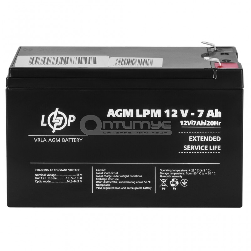 Аккумулятор AGM LogicPower LPM, 12 В 7 Ач — компактний і потужний елемент для вашого електронного обладнання. Завдяки передовій технології AGM, цей акумулятор забезпечить стабільне електроживлення при ємності 7 А*год.
