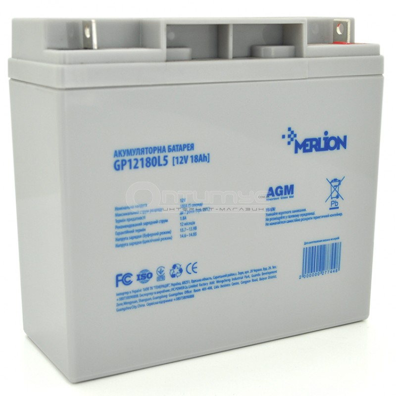 Акумулятор AGM Merlion GP12180L5 White 12 В 18 Аг, спец клеми