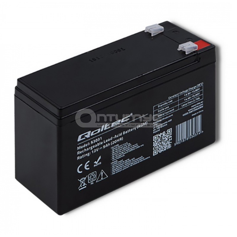 Акумулятор AGM Qoltec QLT1290B, Black Case, 12 В 9 Ач