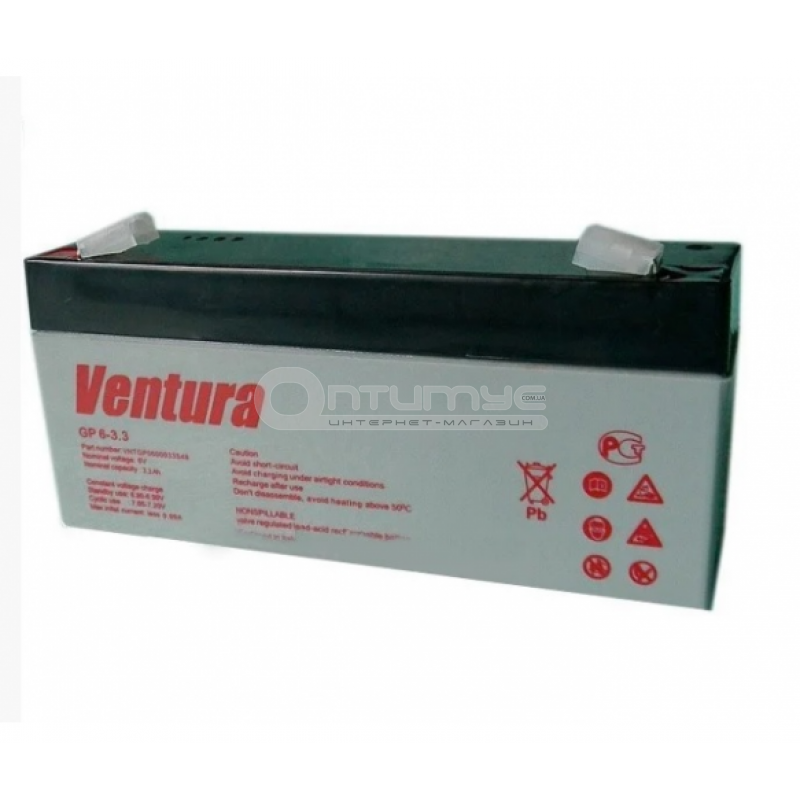 Акумуляторна батарея Ventura 6 В 3.3 Аг – компактна, потужна батарея, створена для забезпечення надійної роботи невибагливих систем. Батарея підключається до необхідної техніки і все, працює якісно і забезпечує енергією в необхідний момент. Встав і немає проблем – це про акумулятор Ventura.