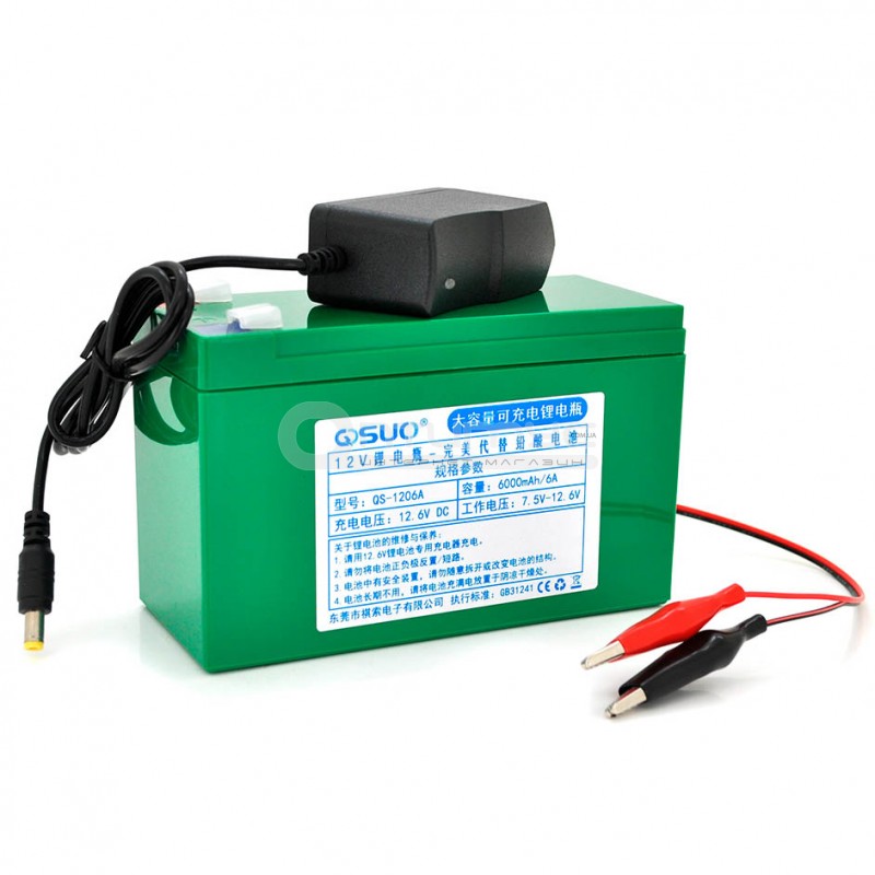 Літій-іонний акумулятор QiSuo 6 Ач 12 В з зарядним пристроєм і крокодилами
