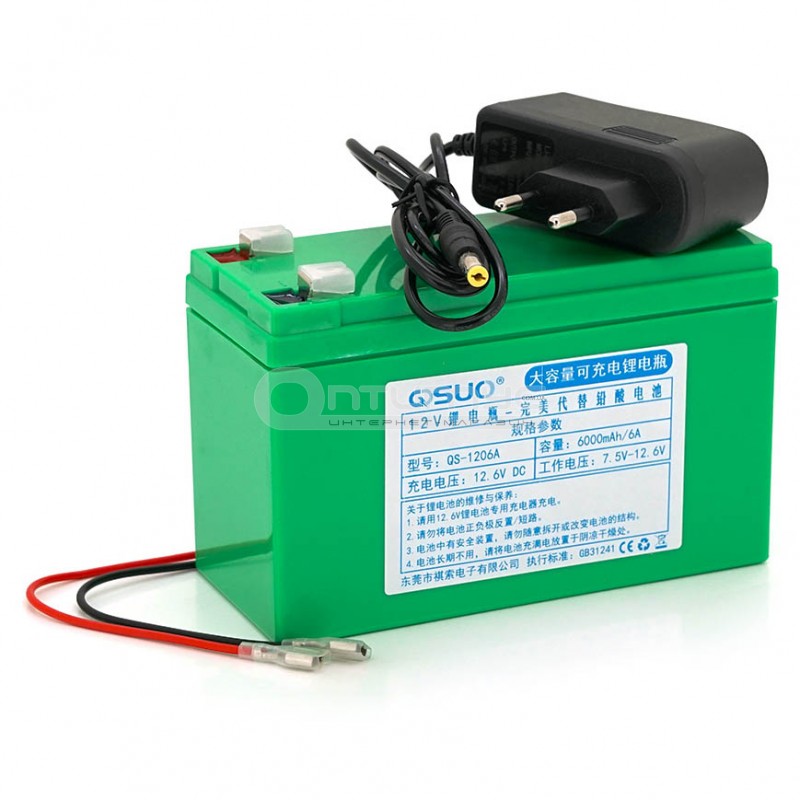 Літій-іонний акумулятор QiSuo 6 Ач 12 В з зарядним пристроєм