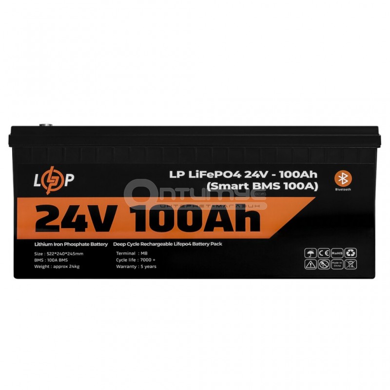 Літій-залізо-фосфатний (літій-ферумний) акумулятор LogicPower LP LiFePO4, Smart BMS 100A, 24 В 100 Аг для ДБЖ