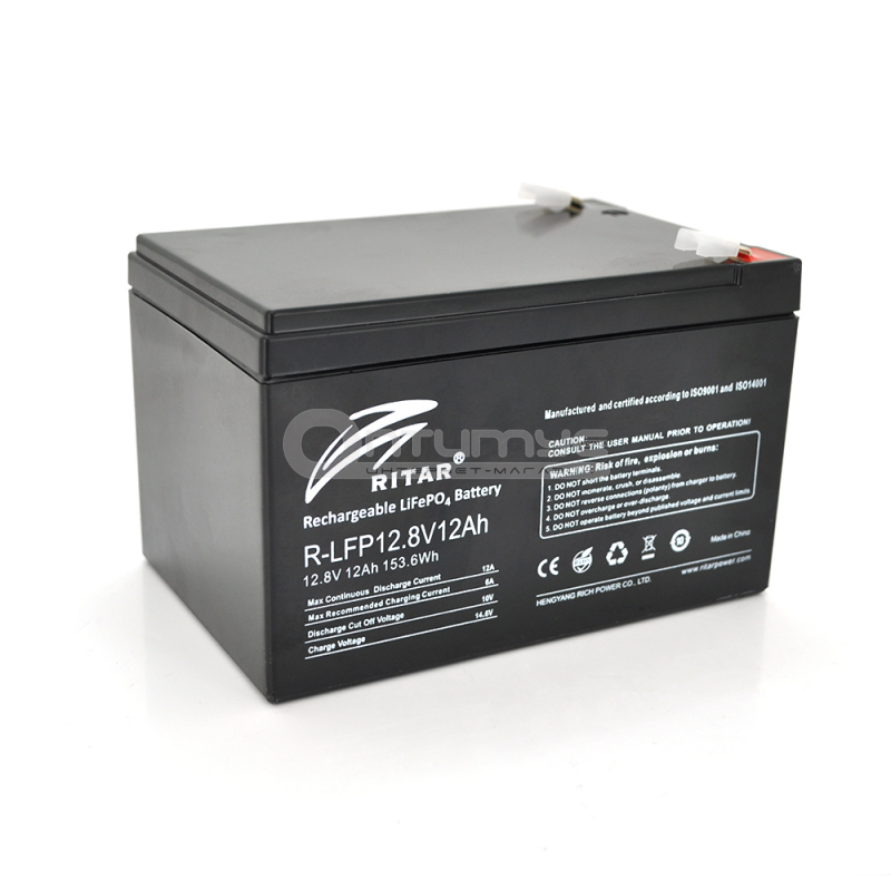 Літій-залізо-фосфатний (літій-ферумний) акумулятор Ritar LiFePO4 12.8 В 12 Аг, 4500 циклів