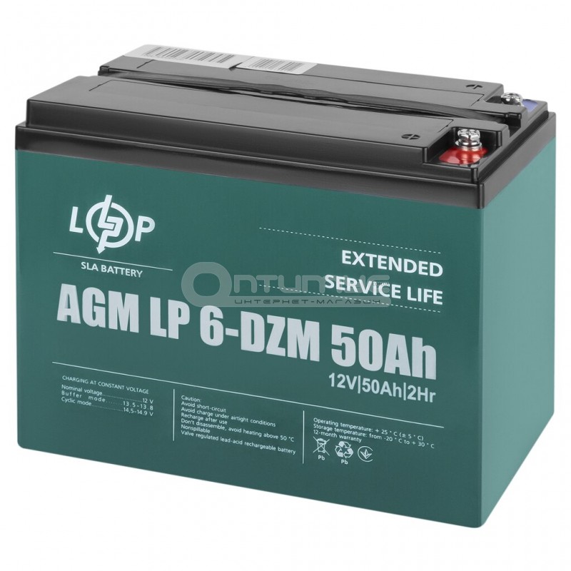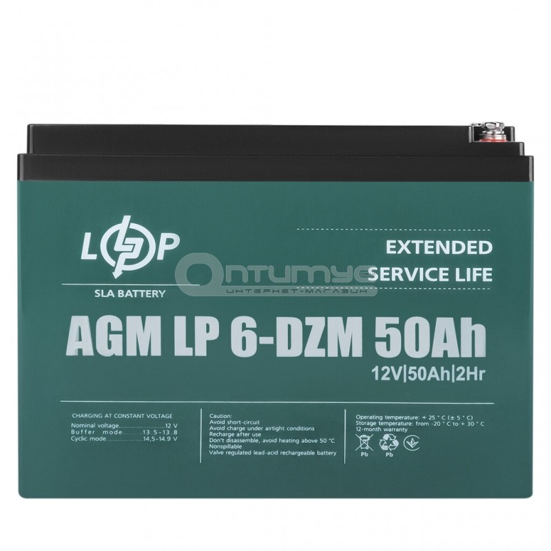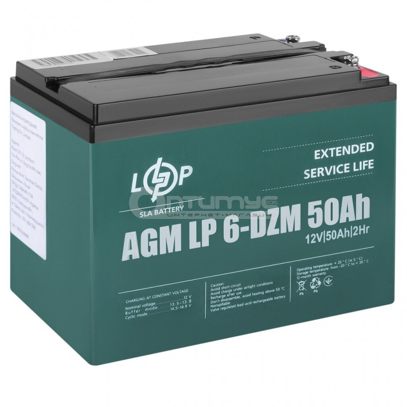 Тяговий акумулятор AGM LogicPower LP 6-DZM-50, 12 В 50 Аг