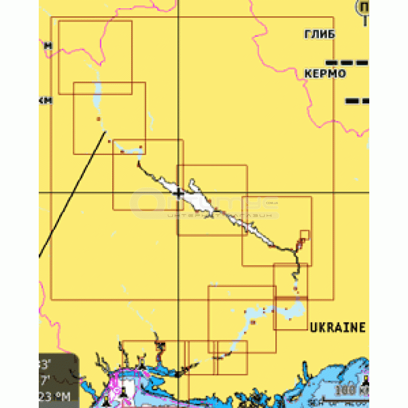 Карта річки Дніпро (Dnepr river) від кордону Білорусі до Чорного моря, для приладів: Humminbird, Lowrance, Raymarine, Simrad, Si-Tex, Samyung Enc, Naviop, Northstar, Murphy , Magellan, GeoNav, Furuno, B & G.
