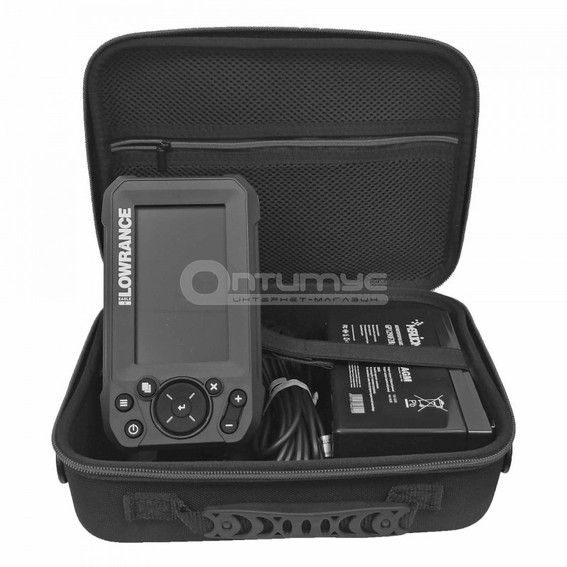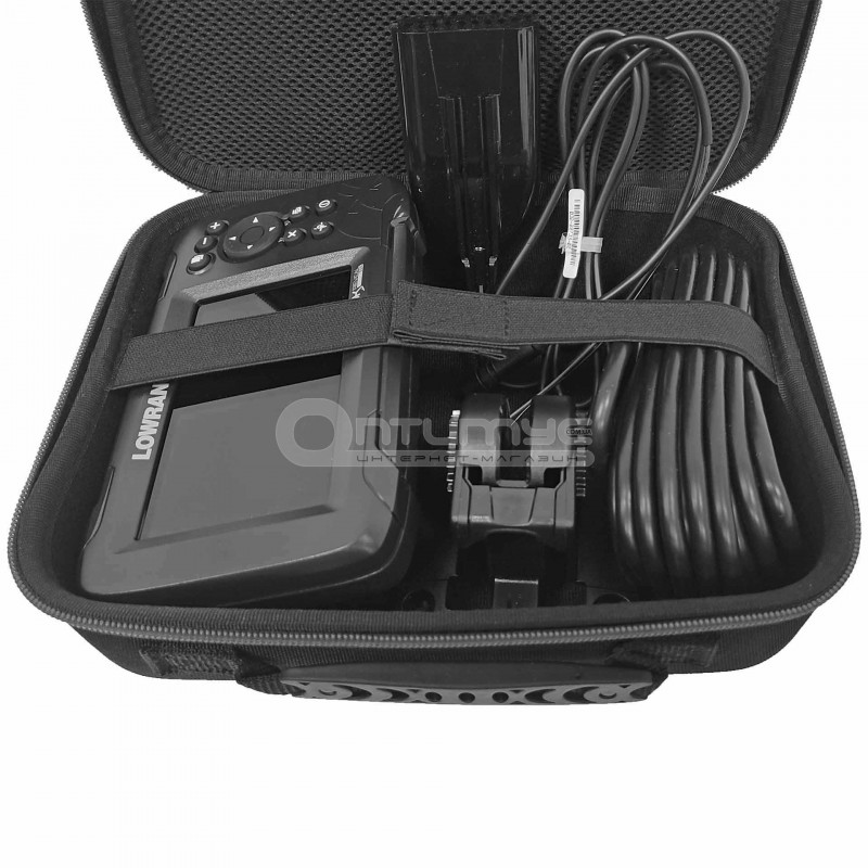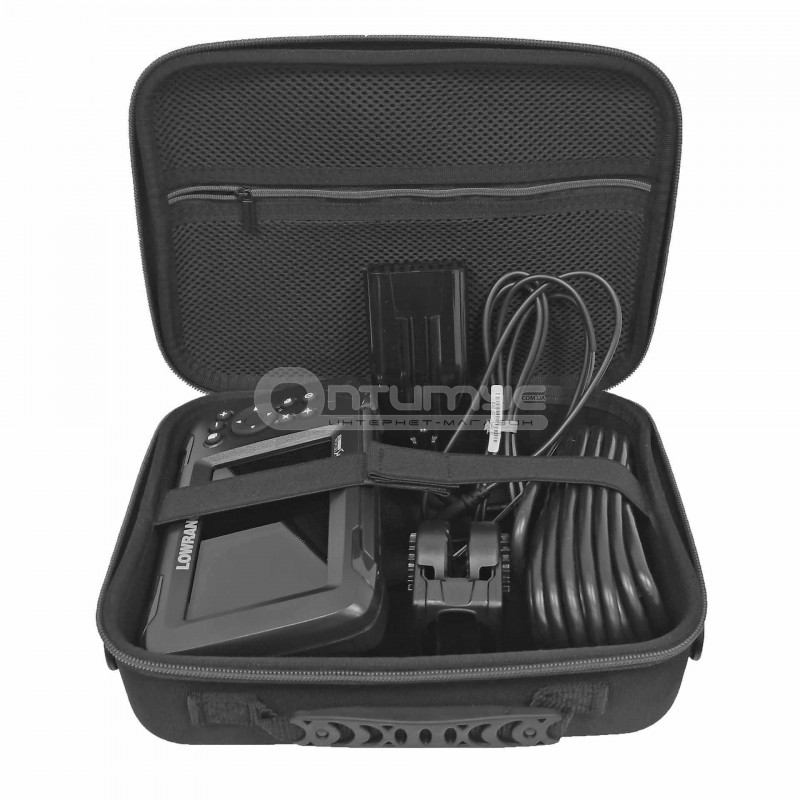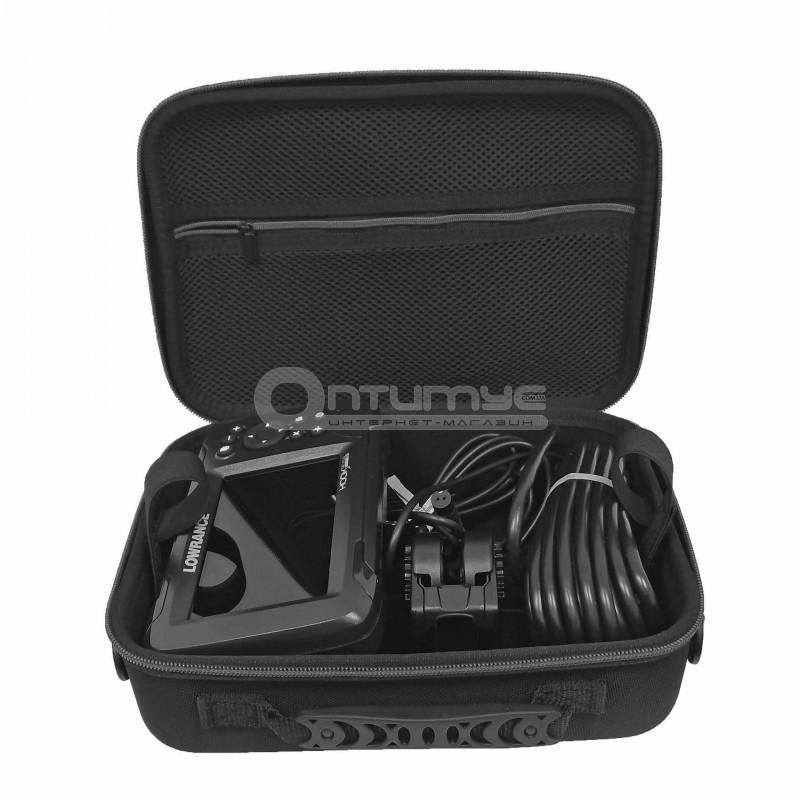 Сумка зроблена з пластику, який обтягнутий щільним нейлоном. Має захист від дощу і від бруду. Призначена для зберігання і перенесення різних ехолотів і підводних камер. Також ви можете зберігати в ній документи, смартфон або іншу електроніку, яку використовуєте в човні. Сумка має компактний розмір і зручну ручку для перенесення, так само в комплект входить ремінь через плече. Усередині сумки є кишенька з сітки для дрібних речей і поролонова вставка з перфорацією. Завдяки перфорації поролону ви можете легко вирізати заглиблення під свої потреби. Зручні розміри дають змогу вмістити в неї різні ехолоти з великими датчиками. Для прикладу, в цю сумку легко поміщаються ехолоти Lowrance з діагоналлю екрана 4-5 дюймів з дачиками. Екрани ехолотів лягають з датчиками, кабелем живлення і підставкою під екран. Все буде в одному місці та під надійним захистом від бруду, вологи та падіння.