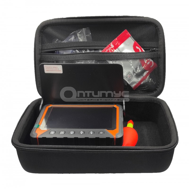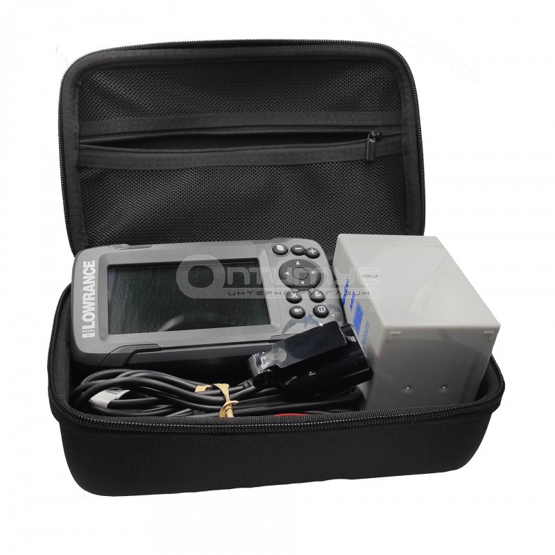 Сумка зроблена з пластику, який обтягнутий щільним нейлоном. Має захист від дощу і від бруду. Призначена для зберігання і перенесення різних ехолотів і підводних камер. Також ви можете зберігати в ній документи, смартфон або іншу електроніку, яку використовуєте в човні. Сумка має компактний розмір і зручну ручку для перенесення, так само в комплект входить ремінь через плече. Усередині сумки є кишенька з сітки для дрібних речей і поролонова вставка з перфорацією. Завдяки перфорації поролону ви можете легко вирізати заглиблення під свої потреби. Зручні розміри дають змогу вмістити в неї різні аыдводны камери або ехолоти з датчиками. Для прикладу, в цю сумку легко поміщаються ехолоти Lowrance з діагоналлю екрана 4,3 дюймів з дачиком і акумулятором в 5,5 Аг. Екрани ехолотів лягають з датчиками, кабелем живлення і підставкою під екран. Все буде в одному місці та під надійним захистом від бруду, вологи та падіння.