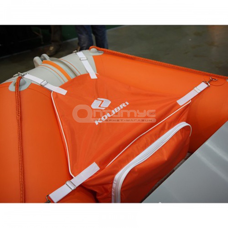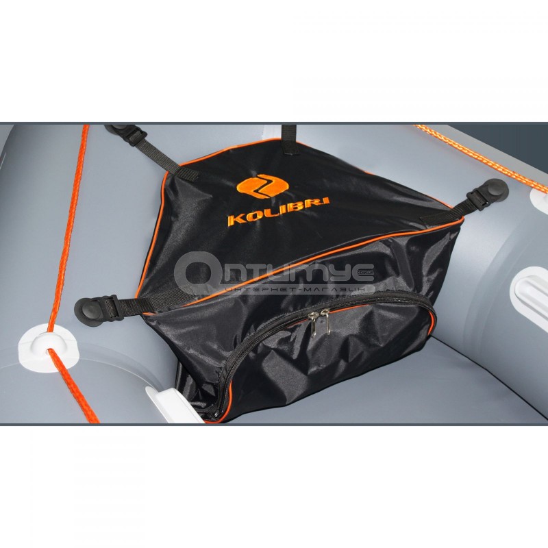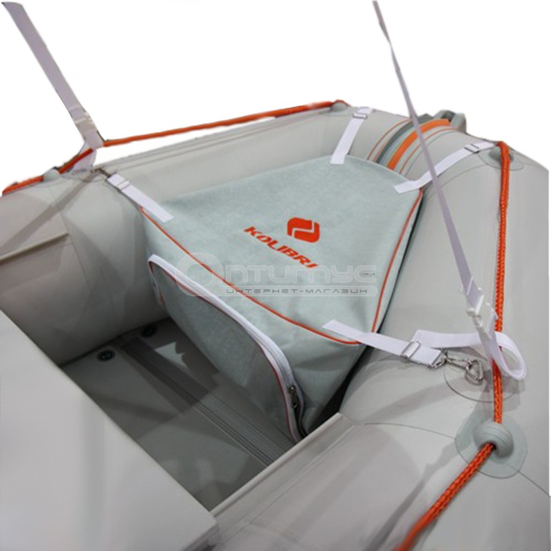 Носова сумка для човнів Kolibri К250Т, К270Т, К290Т виконана з непромокаючої тканини і служить для зберігання речей. Кріпиться на носі човна. У комплекті є тубус, кріплення і клей.