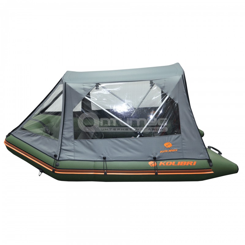 Тент-палатка для човна Kolibri КM280, швидко і легко монтується, захищає пасажирів човна від спеки, вітру, дощу і настирливих комах. При перевезенні в упакованому вигляді тент-намет для надувних човнів Kolibri займає мінімум місця.