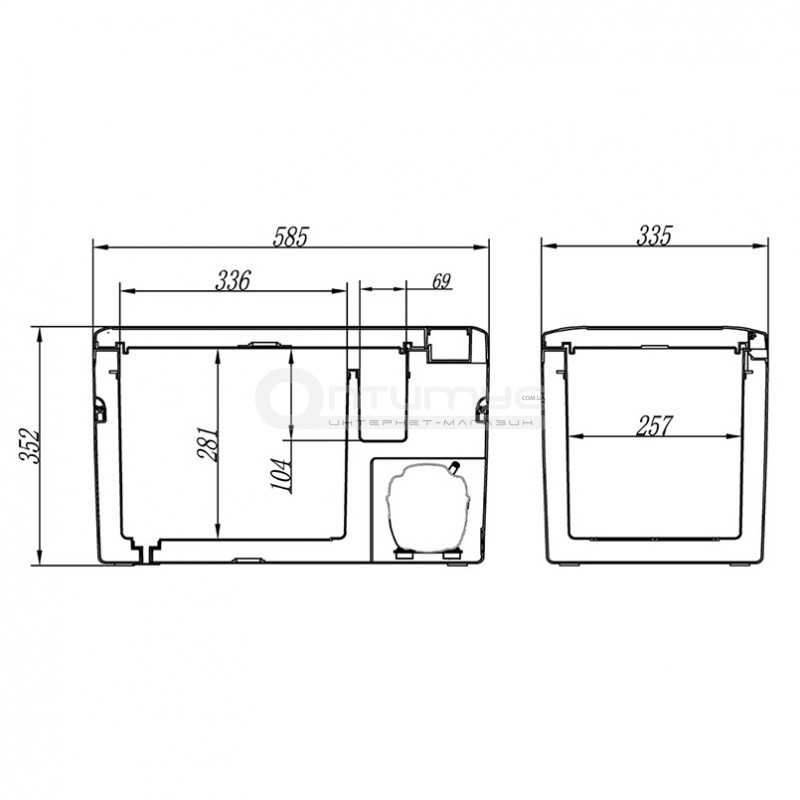 Зовнішній: 585х335х350 мм; Внутрішній: велике відділення: 333х260х280 мм, маленьке відділення 260х68х134 мм |