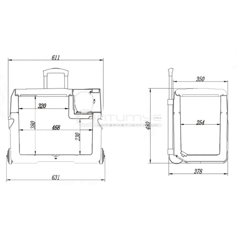 Керування через додаток по Bluetooth, USB-роз'єм для зарядки гаджетів, живлення від акумулятора, зливна горловина всередині холодильника, Розмір холодильного відділення, ДхШхВ: знизу 46х25х23 см, зверху 32х25х15 см |
