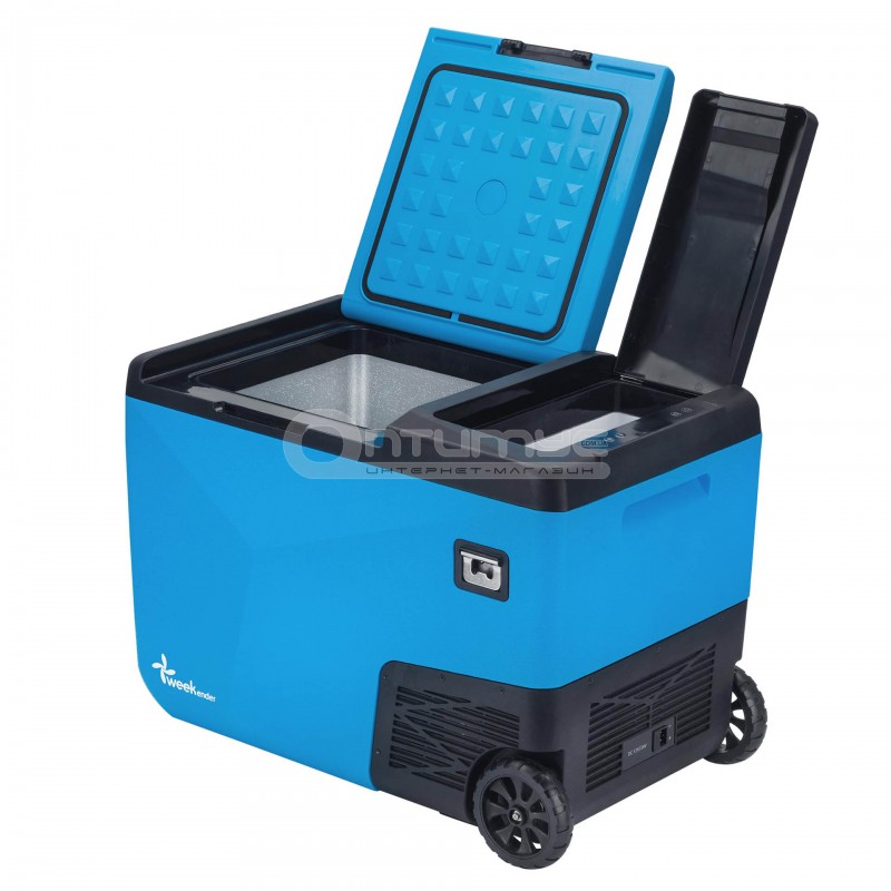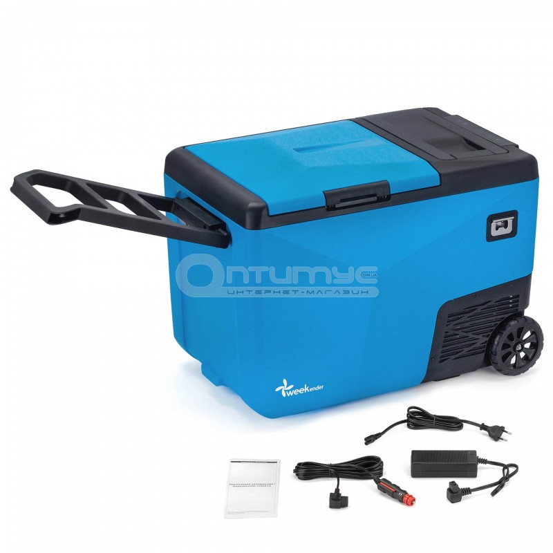 Індикатор заряду акумулятора, дисплей, термостат, ручка і колеса для транспортування, відкривачка для пляшок |
