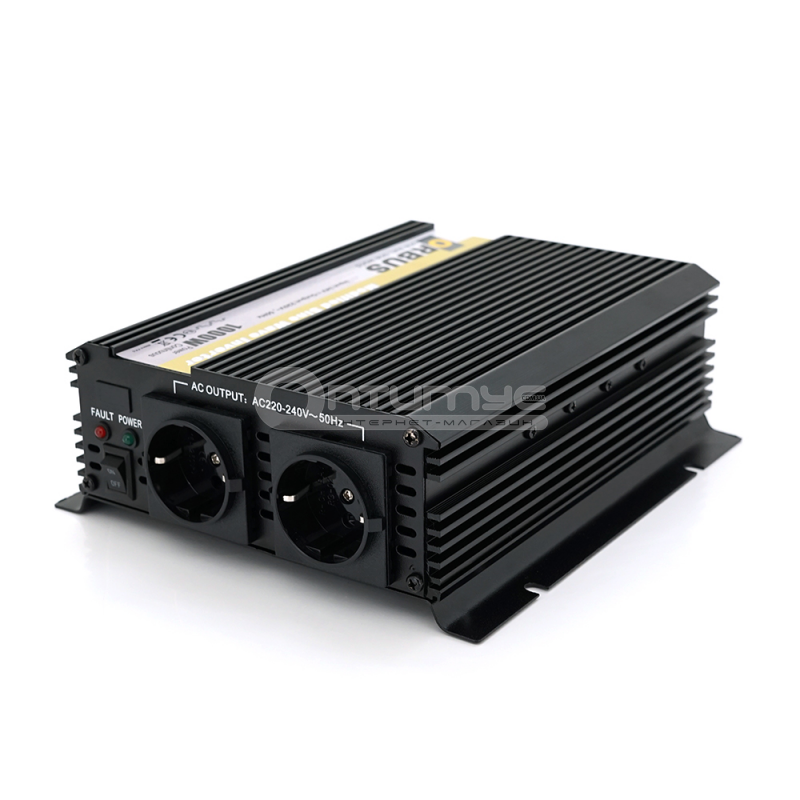 Інвертор напруги ORBUS MS24-1000 має модифіковану синусоїду з номінальною потужністю 1000 Вт. Пристрій працює з вхідною напругою 24 В і вихідною напругою 220 В, перетворюючи постійний струм у змінний. Інвертор оснащений двома розетками і підключається до акумулятора автомобіля. Він має захист від перевантажень, перегріву, розряду акумуляторної батареї, короткого замикання, зворотної полярності, функцію повільного старту і захист заземлення. Коефіцієнт корисної дії перевищує 90%. Вага та розміри інвертора не зазначені. Гарантійний термін становить 12 місяців. Виробник – Китай. Комплектація включає інвертор, комплект проводів для підключення до клем акумулятора і запобіжники.