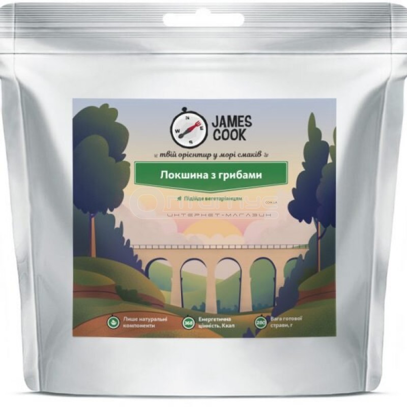 Паста с грибами James CookЭто не просто паста с сушеными грибами. Шампиньоны тщательно протушены вместе с овощами, что придает пасте очень насыщенный вкус. В смело можете есть ее не только в горах, но и дома или даже на обед в офисе. Блюдо вообще не содержит мясных продуктов, и потому отлично подойдет для вегетарианцев. При приготовлении используются только натуральные компонеты без красителей и усилителей вкуса.