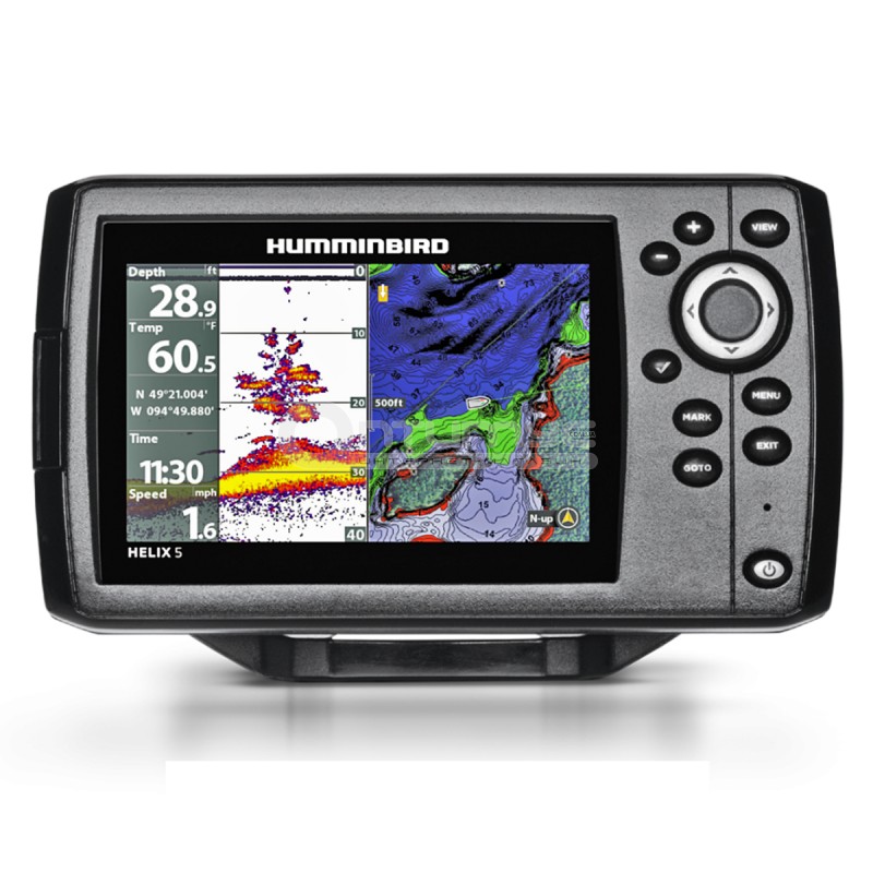 Ехолот Humminbird Helix 5 CHIRP GPS G2 - ехолот нового покоління від компанії Humminbird. 5-дюймовий TFT дисплей з LED підсвічуванням, з новим призначеним для користувача інтерфейсом і операційною системою. У комплектації стандартний CHIRP DualBeam PLUS сонар з вихідною потужністю 4000 Вт. Вбудований GPS навігатор, UniMap-картографія, слот для micro SD card для зберігання додаткових карт і зберігання шляхових точок.