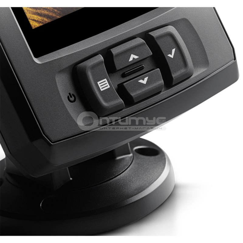 Ехолот PiranhaMAX 4x з кольоровим екраном, сонаром на два променя. Визначає розмір риби. Є функція відображення структури дна, опція збільшення. Дно відображається як чорна смуга. Підсвічування екрану.